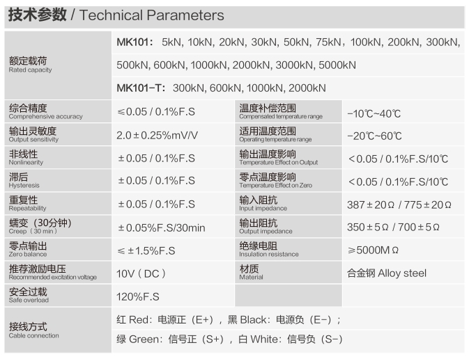 輪輻式傳感器MK101-T產品型號:MK101-T品牌:密克斯特點:高精度、抗偏載能力強、安裝方便穩定、低外形結構便于應用、耐腐蝕性強、高防護性