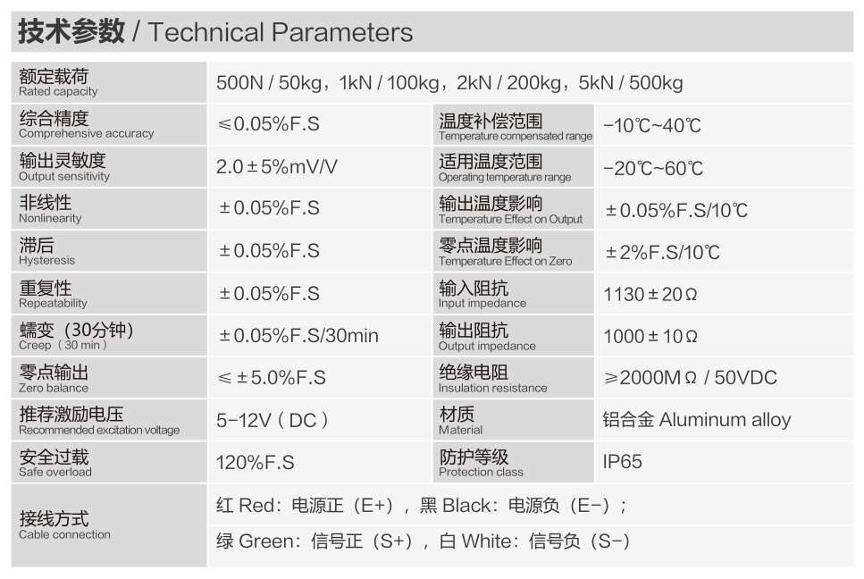 特點(diǎn):S型傳感器具有結(jié)構(gòu)緊湊、穩(wěn)定性好、測(cè)量范圍廣、線性度和重復(fù)性好等特點(diǎn)。其結(jié)構(gòu)為一條S形彎曲梁,由兩個(gè)平行的彈性體組成,并在彈性體上安裝有電阻應(yīng)變片,這種設(shè)計(jì)使得傳感器在受到外力作用時(shí)能夠產(chǎn)生穩(wěn)定的應(yīng)變,從而輸出準(zhǔn)確的測(cè)量信號(hào)。此外,S型傳感器還具有多種輸出信號(hào)選項(xiàng),如模擬輸出和數(shù)字輸出,方便用戶根據(jù)實(shí)際需求進(jìn)行選擇。