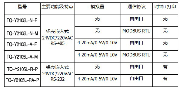 TQ-Y2105L 系列儀表功能: